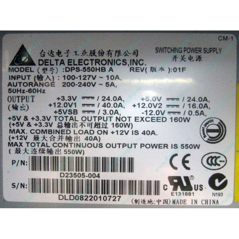Блок питания: Delta Electronics DPS-550HB A (Rev: 01F) p/n: D23505-004, мощность 550 Вт (24+8pin).