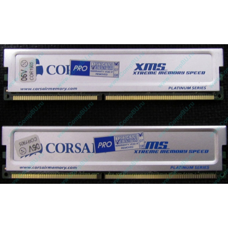 Оперативная память 2 шт x 512 Mb DDR1 Corsair CMX512-3200C2PT XMS3202 V 5.2 Platinum Series CL2.0 pc-3200 (400MHz) SDRAM DIMM (с радиатором).