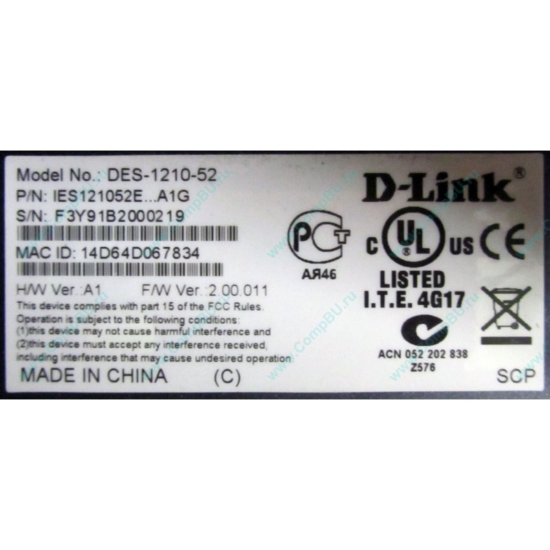Коммутатор (свитч) Dlink DES-1210-52 (IES121052E...A1G, H/W Ver.:A1, F/W Ver.:2.00.011).