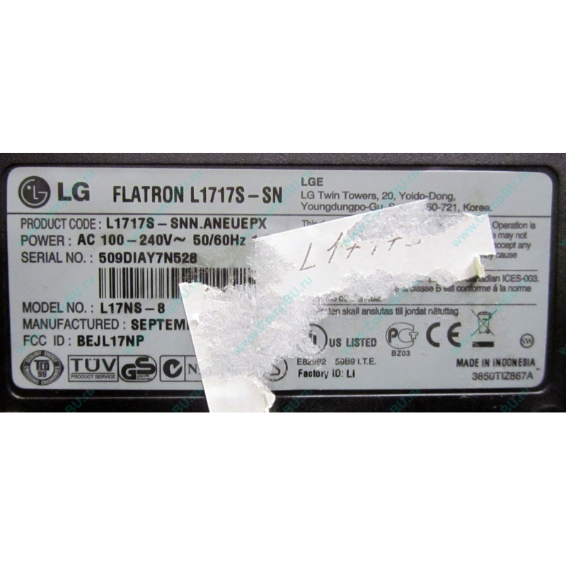 Продается монитор БУ 17" ЖК LG Flatron L1717S 1280x1024 (5:4), цвет черный + серебристый. Состояние хорошее.